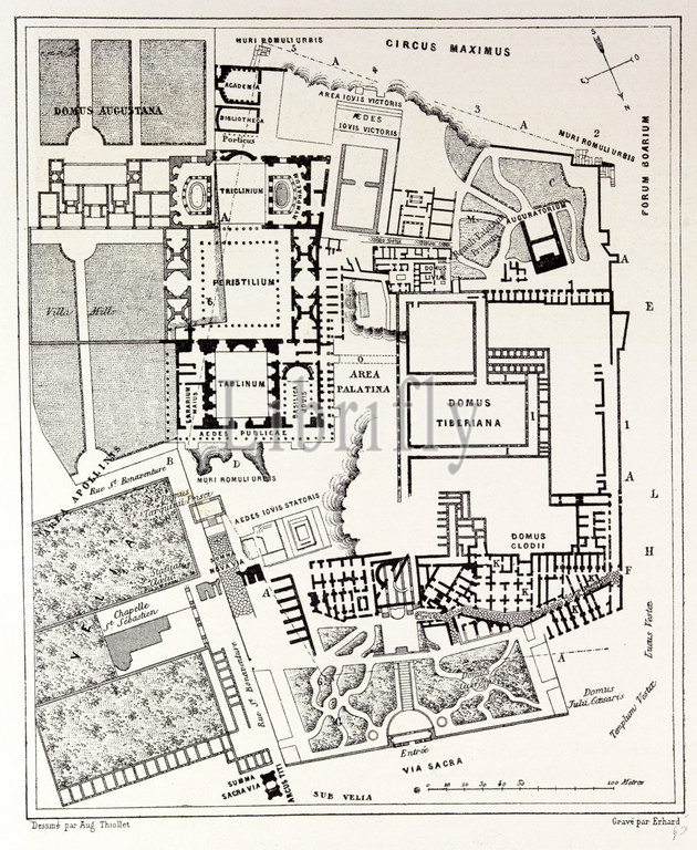 rome italy 1875, plan of the excavations on the palatine, vintage, old print, 19th century, victorian, retro, quint, lox, engraving