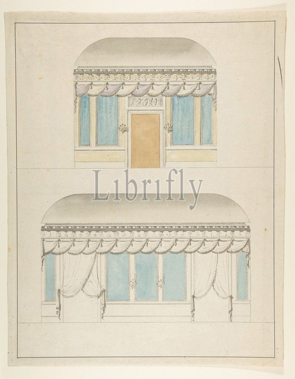 Room elevations, 19th century, Pen and ink and watercolor on laid paper, sheet: 17 1/2 x 13 5/8 in. (44.5 x 34.6 cm), Drawings, Anonymous, French, 19th century
