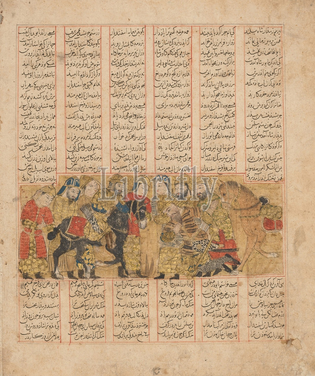 Rustam Pleads, Tus, Kai Khusrau, Folio, Shahnama, Book, Kings, .H, 741/.D, 1341, Iran, Shiraz, Ink, opaque watercolor, gold, paper, Page, 14 1/2 x 11 7/8, 36.8 30.2 cm, Codices