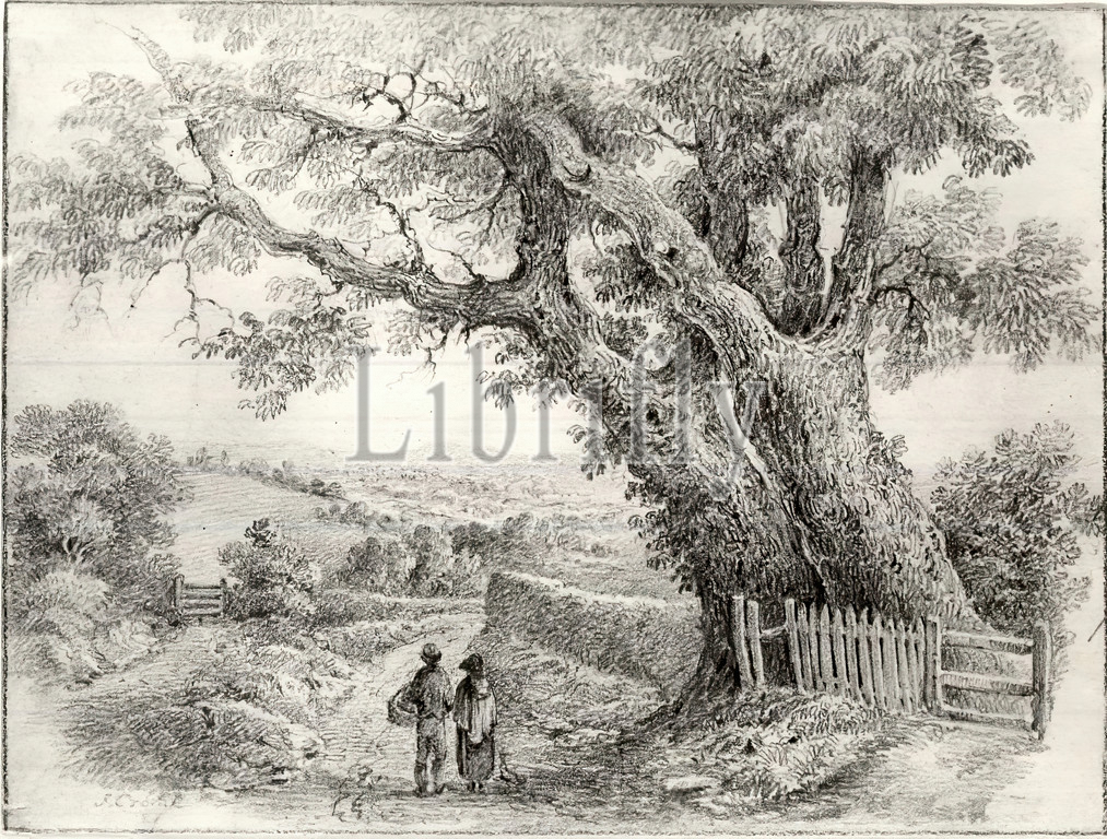 Rustic Landscape, John Crome, British, 1768-1821, Pencil drawing on wove paper, 5 3/16 x 6 15/16 in., 13.2 x 17.7 cm