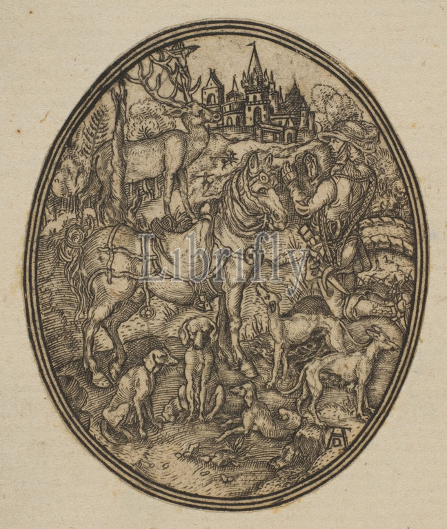 Saint Eustace, reduced reverse copy, oval, n.d, Engraving, Sheet, 2 9/16, 3/16, 6.5, 5.5 cm, Prints, After Albrecht Dürer, German, Nuremberg, 1471–1528
