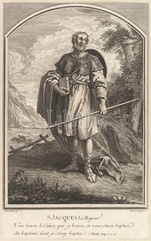 Saint Jacques Le Majeur, 1726, Etching and engraving, Sheet (trimmed): 13 9/16 × 8 7/16 in. (34.5 × 21.4 cm), Prints, Etienne Brion (French, Paris, ca0), After François Boucher (French, Paris 1703–1770 Paris)