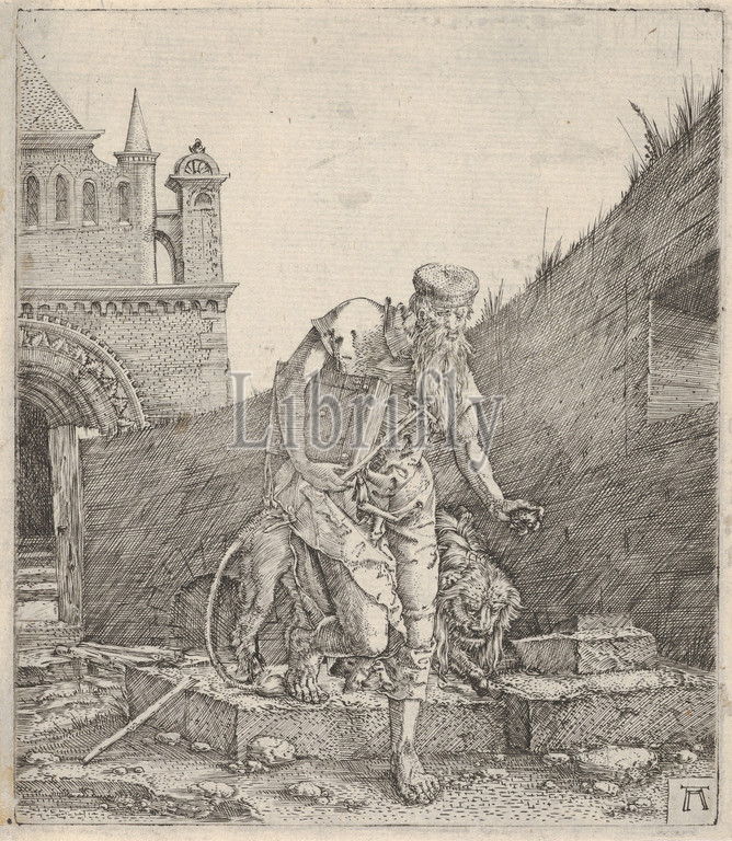 Saint Jerome Walking in a Churchyard, Engraving, Sheet: 4 15/16 x 4 5/16 in. (12.5 x 10.9 cm), Prints, Albrecht Altdorfer (German, Regensburg ca. 1480–1538 Regensburg)