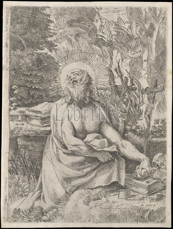 Saint Jerome in the Wilderness, ca. 1591, Etching and Engraving, 9 3/4 x 7 9/16 in. (24.8 x 19.2 cm), Prints, Annibale Carracci (Italian, Bologna 1560–1609 Rome), Annibale Carracci was one of the most important artists working in Italy during the late sixteenth and early seventeenth centuries. Together with his cousin Ludovico and his brother Agostino, he played a critical role in what has been labelled 'the reform of painting'