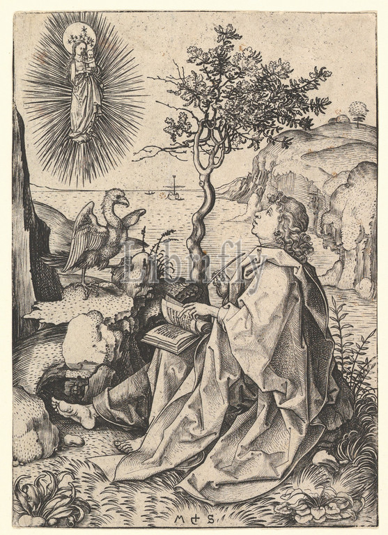 Saint John, Patmos, 15th century, Engraving, 6-1/4 x 4-7/16, Prints, Martin Schongauer, German, Colmar ca., 1435/50–1491, Breisach