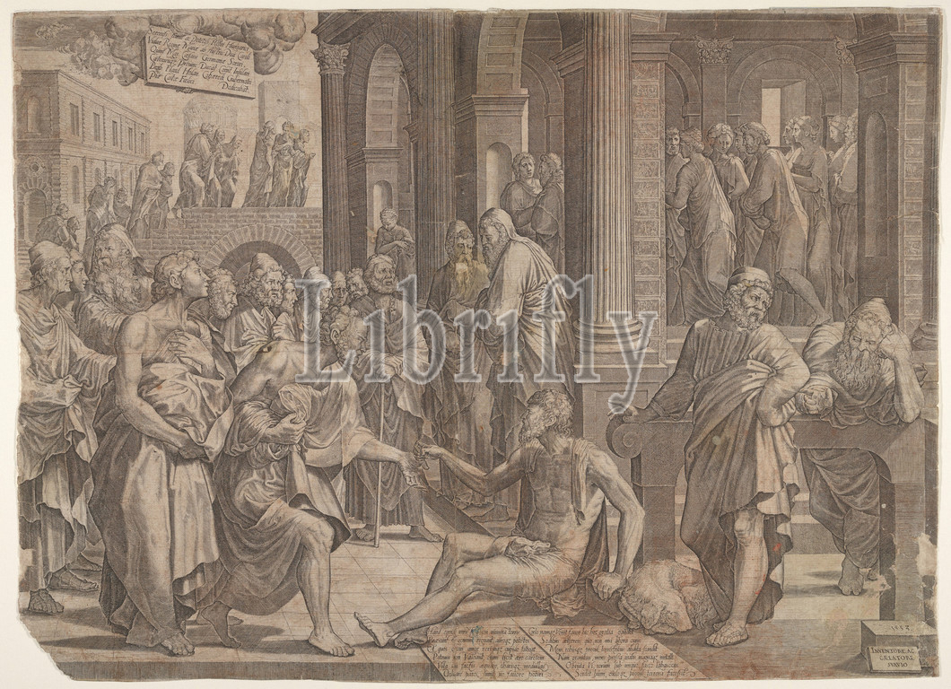 Saint John, Peter Healing, Cripple, 1553, Engraving, sheet, 12 1/8 x 16 11/16, 30.8 42.4 cm, Prints, Lambert Suavius, Netherlandish, ca., 1510–by, 1576
