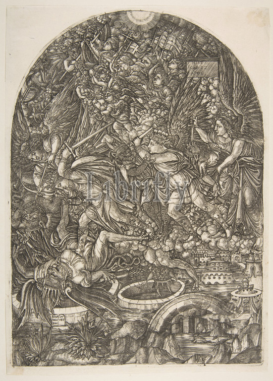 Saint Michael, Dragon, Apocalypse, n.d, Engraving, plate, 11 3/4 x 8 7/16, 29.8 21.5 cm, Prints, Jean Duvet, French, ca., 1485–after, 1561