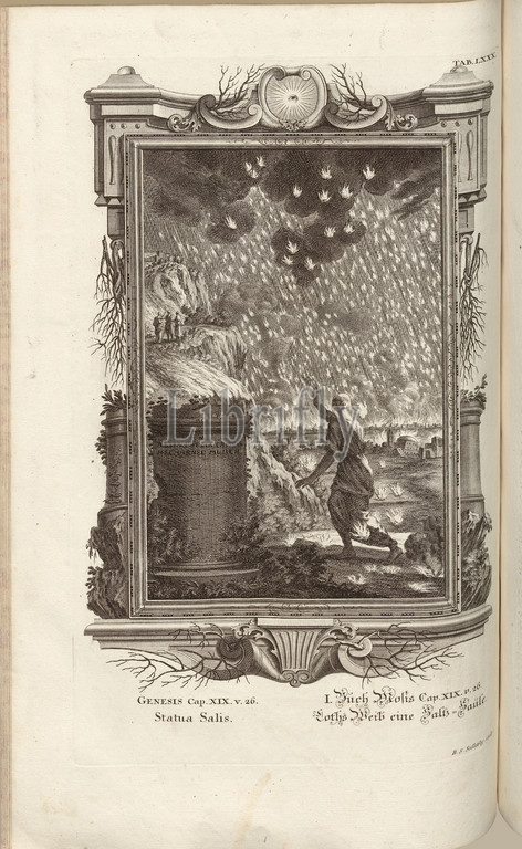 Salis statue, Parallel Title, Loth's Wife, Salt Column, Lot's wife looks back, freezes, column, salt, Signed, B. S. Sedlezky sculp, copperplate engraving, plate LXXX, vol. 1, Füssli, Johann Melchior, Setlezki, Balthasar Sigmund, sculp., 1731, Johann Jakob Scheuchzer, Kupfer-Bibel, Augspurg, Ulm, gedruckt bey Christian Ulrich Wagner, 1731-1735