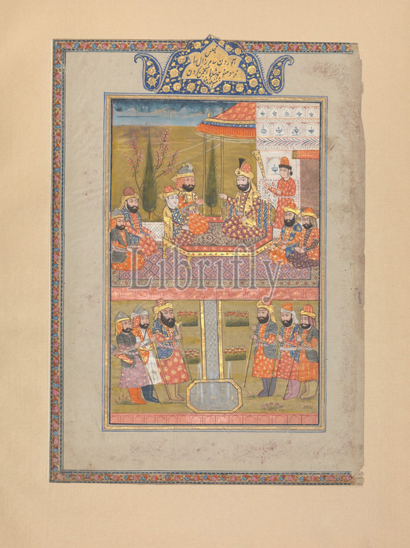 'Sam and Zal before Manuchihr', Folio from a Shahnama (Book of Kings), late 19th–early 20th century, Attributed to India, Kashmir, Ink, opaque watercolor, silver, and gold on paper, OveralL. 12 5/8 x 8 1/2in. (32.1 x 21.6cm), Codices