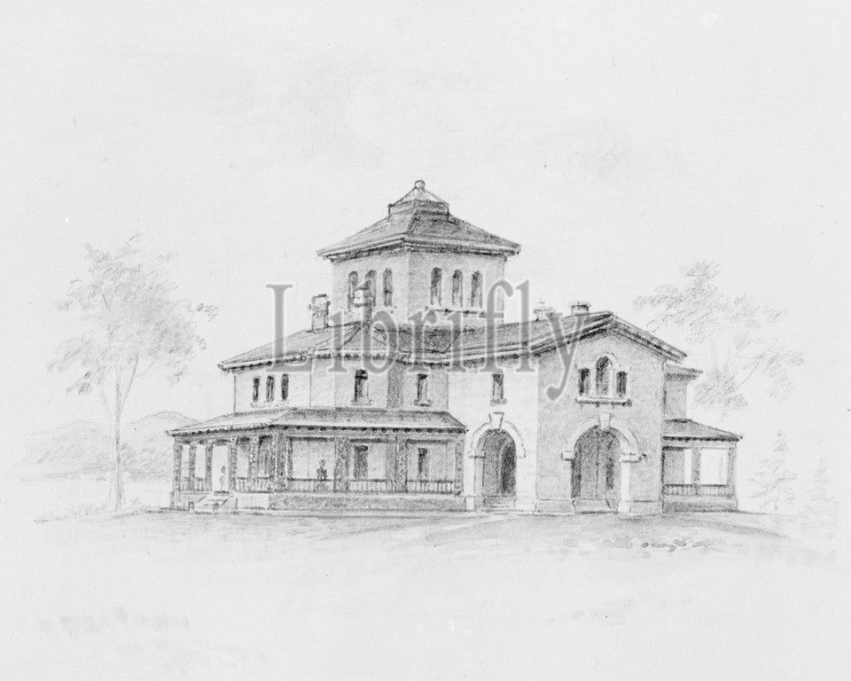 Samuel F, B, Morse House, Poughkeepsie, New York, perspective, plan, 1851, Watercolor, sheet, 9 5/8 x 6 7/8, 24.5 17.5 cm, Drawings, Alexander Jackson Davis, American, 1803–1892, West Orange, Jersey