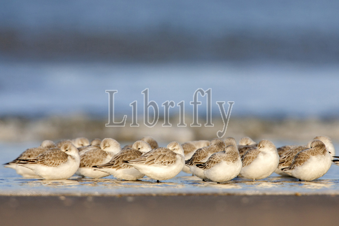 Sanderling, group, resting, surf, Calidris alba, Netherlands, nature, bird, animal, wildlife, wild, fauna, natural, feather, sky, beak, wing, outdoor, freedom, colourful, Liszt, Natural History, ornithology, vertebrate animals, photography, color image