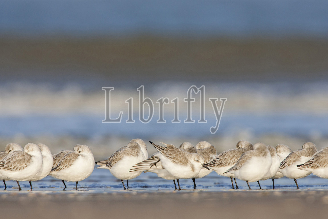 Sanderling, group, resting, surf, Calidris alba, Netherlands, nature, bird, animal, wildlife, wild, fauna, natural, feather, sky, beak, wing, outdoor, freedom, colourful, Liszt, Natural History, ornithology, vertebrate animals, photography, color image