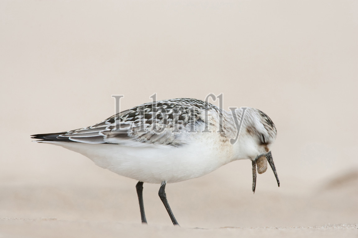 Sanderling with pellet (serie of three images), Calidris alba