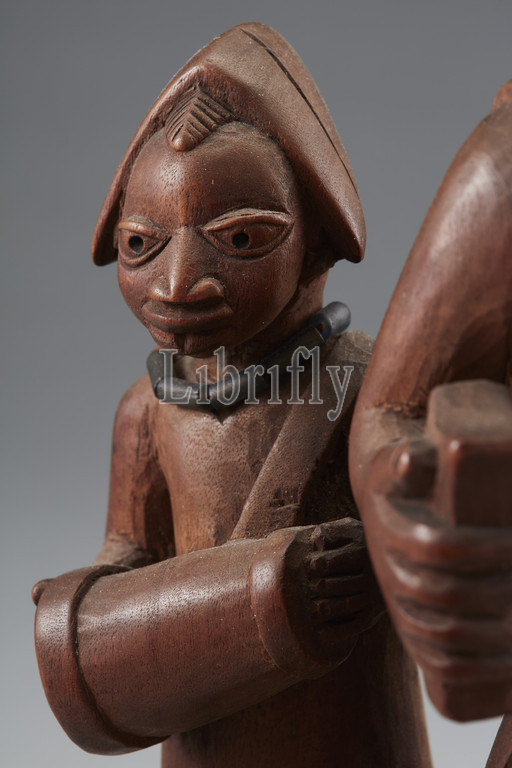 Sango staff (Ose Sango), Duga of Meko (Nigerian, 1880-1960), 20th century, wood, glass, fiber, 18-7/8 x 7 x 6-1/8 in., Inscription: collector's number in white paint at center of undersidel: E79.9, African Art