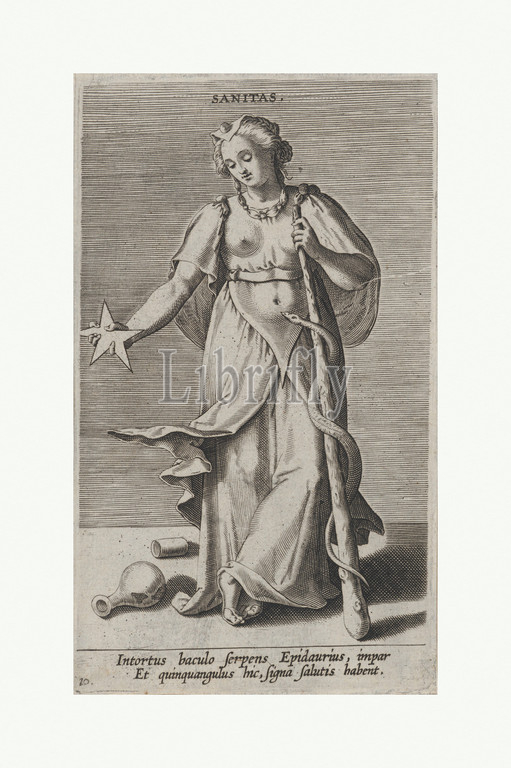 Sanitas, from Proposopographia, ca. 1585–90, Engraving, plate: 5 7/8 x 3 7/16 in. (15 x 8.8 cm), Prints, Philips Galle (Netherlandish, Haarlem 1537–1612 Antwerp)