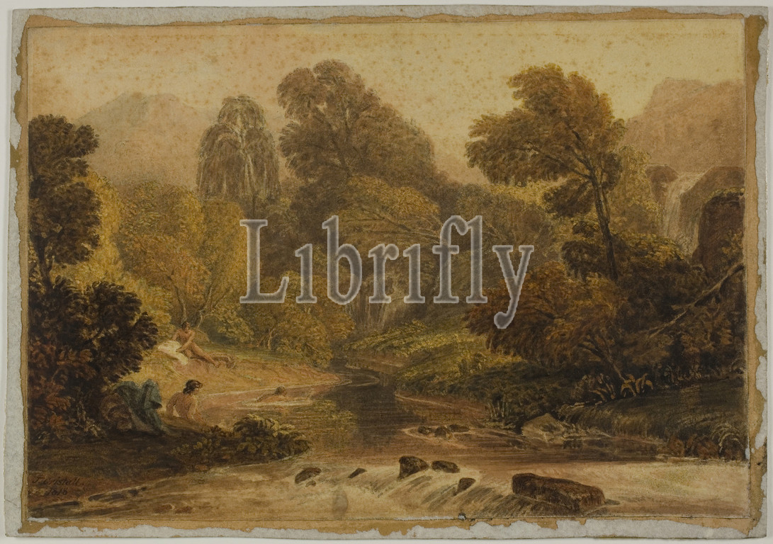 Scene, Lodore, Cumberland, 1818, Joshua Cristall, English, c. 1767-1847, England, Watercolor, graphite, ivory wove paper, laid down, board, 195