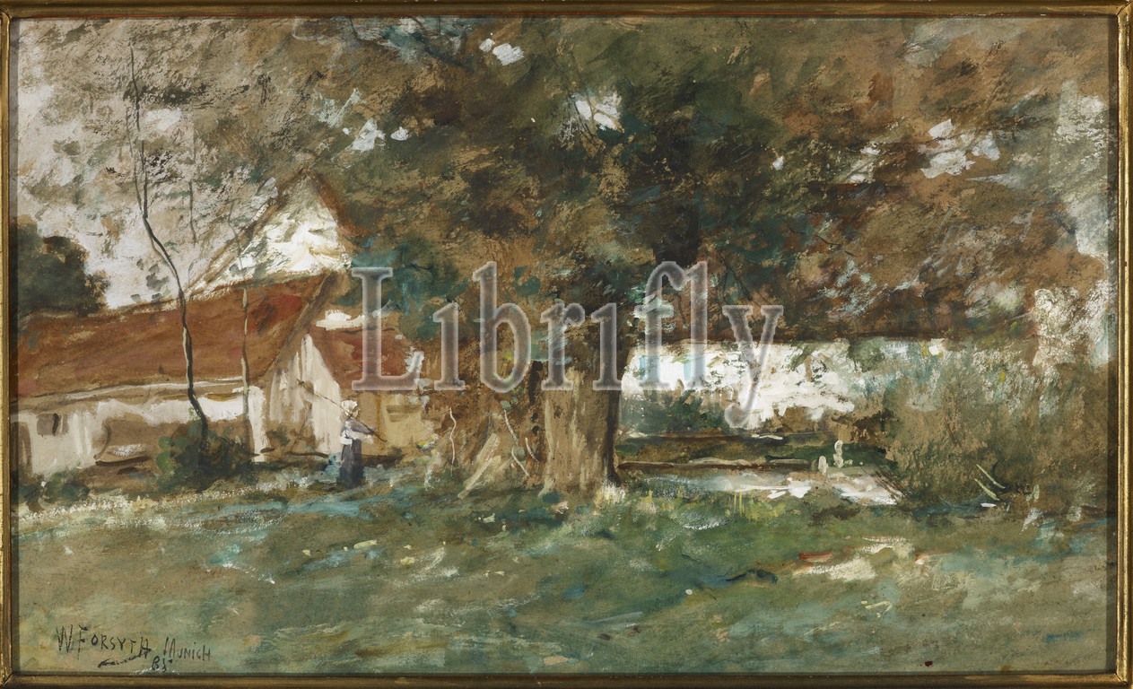 Schleissheim, William J. Forsyth, American, 1854-1935, 1885, watercolor, pencil, tan paper, 13 x 21-1/2, sight, Signed, dated, black, l.l., W FORSYTH MUNICH, 85
