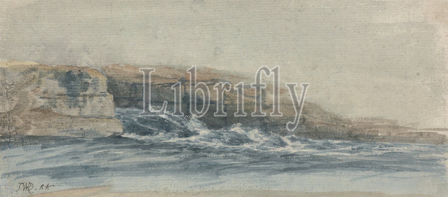 Sea Breaking, Stony Cliffs, Left, James Ward, 1769–1859, British, Watercolor, medium, moderately textured, cream laid paper, Sheet, cliffs, landscape, sea