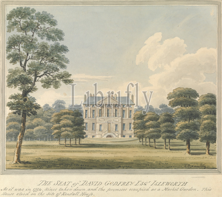 Seat, David Godfrey, Isleworth, Middlesex, Charles Tomkins, 1757–1823, British, Pen, black ink, watercolor, medium, slightly textured, white laid paper, Sheet, architectural subject, exterior view, house, landscape, England, Europe, Greater London, Isleworth, United Kingdom