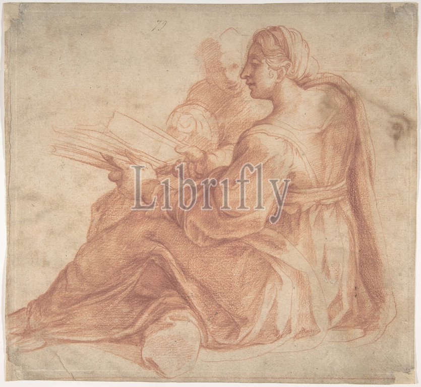 Seated Sibyl, Attendant Genius, recto, Study, Head, Horse, Profile, verso, ca, 1540, Red chalk, beige paper, pen, brown ink, 9 5/8 x 10 7/16in, 24.5 26.5cm, Drawings, Pirro Ligorio, Italian, Naples ca., 1512/13–1583, Ferrara, monumental, Sibyl, inspired, figural types, Ancestors, Christ, frescoed, Michelangelo, Sistine ceiling, 1508, 1512, bold, finished manner, drawing, red, recalls, Raphael, studies, 1515–20, height, Roman period