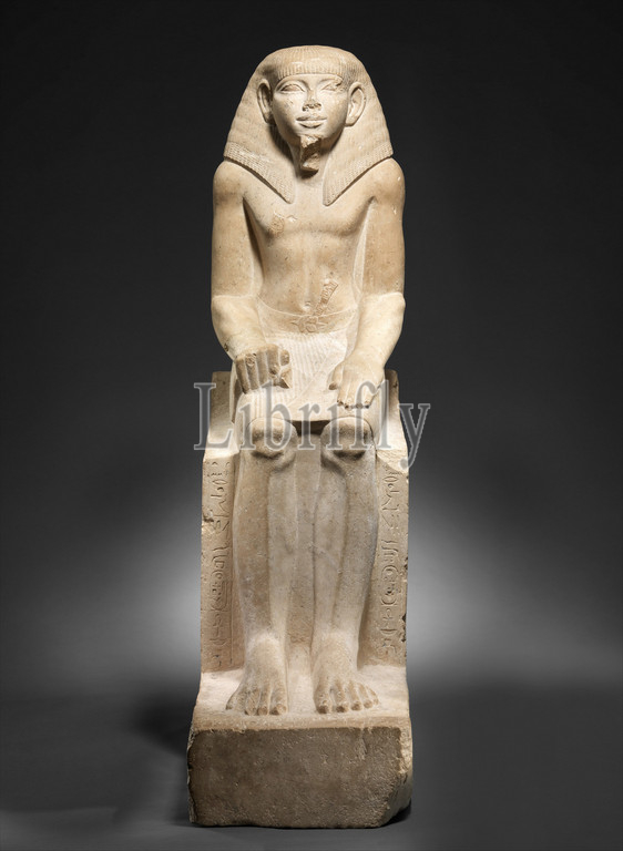 Seated Statue, Steward Sehetepibreankh, Middle Kingdom, Dynasty 12, ca, 1919–1885 B.C, Egypt, Memphite Region, Lisht South, Tomb, Sehetibreankh, Pit 6L.P19, 1923–24, Limestone, H, 94.5 cm, 37 3/16, W, 29.5, 11 5/8, D, 58, 22 13/16, statue, example, common type, human representation, early Middle, Kingdom, 2000–1900, patterned, depictions, king, thus proclaims, Sehetepibreankh spent, life, service, true delegate