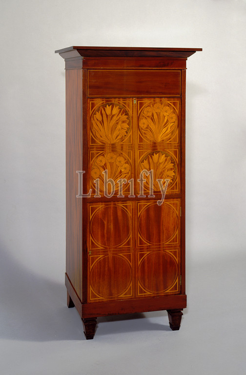 Secretary, from the drawing room, Pownall Hall, Cheshire, England, Arthur Heygate Mackmurdo, English, 1851–1942, and possibly Herbert Percy Horne, English, 1864–1916, Century Guild of Artists, England, 1882–c.1888, c.1887, Mahogany, satinwood, and leather, Wilmslow, Cheshire, England, Europe, Manchester, Manchester unitary authority, England, Europe, London, Greater London, England, Europe, Furniture, 60 5/16 x 25 1/2 x 20 9/16 in. (153.2 x 64.8 x 52.2 cm)