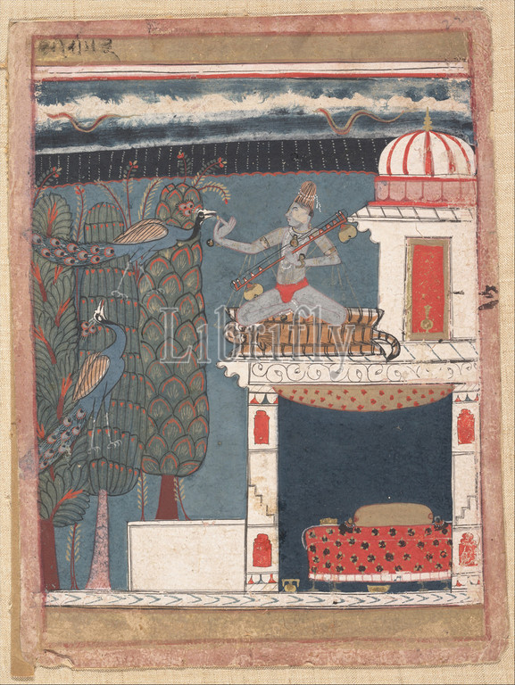 Setmalar Ragini, Folio, ragamala series, Garland, Musical Modes, ca, 1630–40, India, Madhya Pradesh, Malwa, Ink, opaque watercolor, paper, 13 1/4 x 9 3/4, 33.7 24.8 cm, Paintings, ragini, evokes, rainy season, given dramatic, expression, bands, heavy clouds, snakelike bolts, lightning across, upper register, associated text, Lachiman Das, tells, woman, stricken, separation, husband, dressed, man, up asceticism, rubbed ash, body