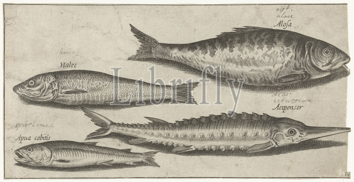 Shad, sturgeon, smelt, herring Fish, series title, Piscivm vivae icones, fishes, Pierre Firens, 1600, 1638, paper, engraving
