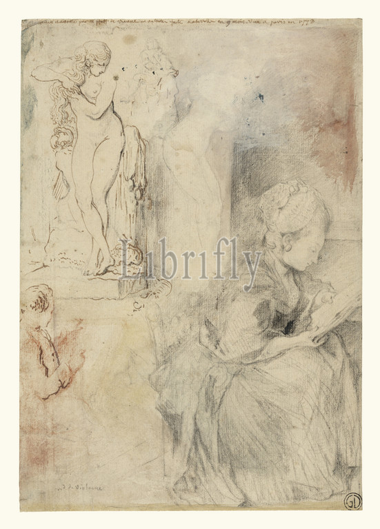 Sheet, Studies, Gabriel Jacques de Saint-Aubin, French, 1724, 1780, late 1760, 1779, Black, red, white chalk, pen, brown ink, watercolor, off-white paper