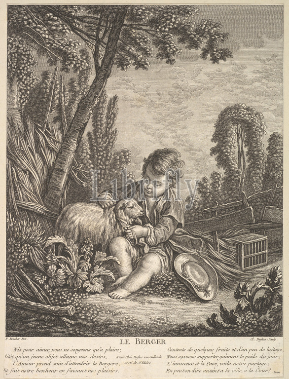 Shepherd, ca3, Etching, engraving, Sheet, trimmed, 10 5/8, 7 15/16, 27, 20.2 cm, Prints, Claude Augustin Duflos le Jeune, French, Paris, 1700–1786, After François Boucher, 1703–1770