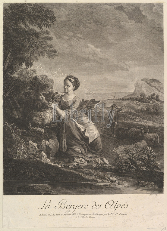 Shepherd Girl, Alps, Etching, Engraving, sheet, 15 1/8 x 10 13/16, 38.4 27.5 cm, Prints, Philippe Trière, French, Paris, 1756–1815, After François Boucher, 1703–1770