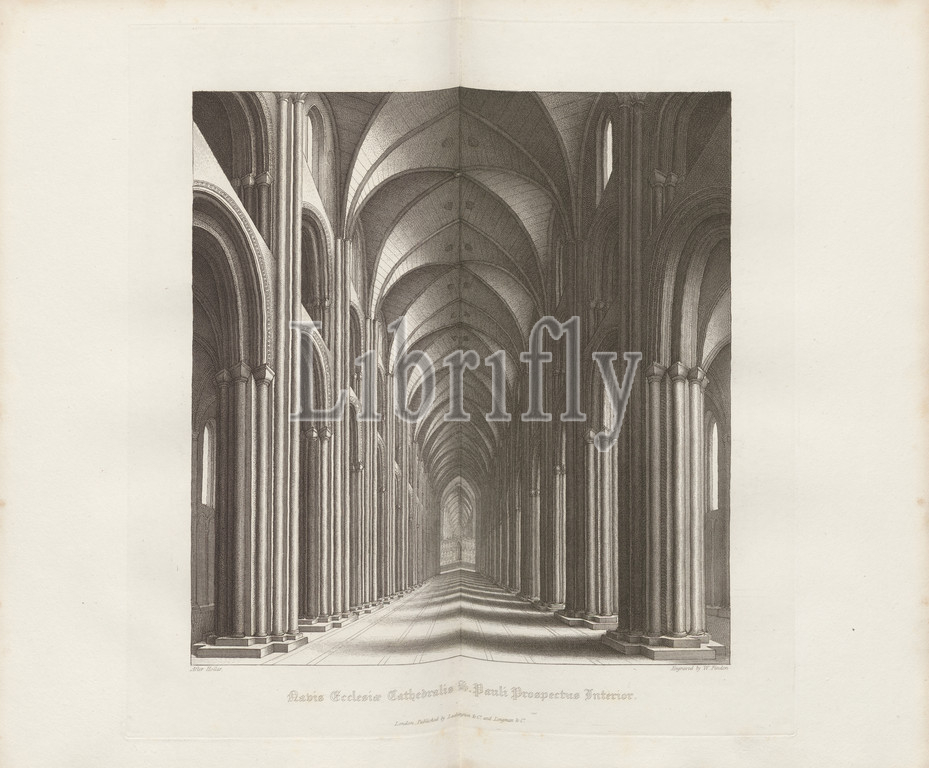 ship Cathedral, St., interior prospect Paul, Nave, Old St Paul's Cathedral, London, signed, Hollar, Engraved, W. Find, Published, Lackington &, Co., Longman &, Pl. XLI, p. 108, Wenzel, drawing, Finden, W., engraving, Lackington & Co, publ., Longman & Co., William Dugdale, Henry Ellis, history, Saint Paul's Cathedral, London, foundation, extracted out, original charters, records, leiger-books, manuscripts, printed, Lackington, Hughes, Harding, Mavor, Jones, Longman, Hurst, Rees, Orme, Brown, 1818