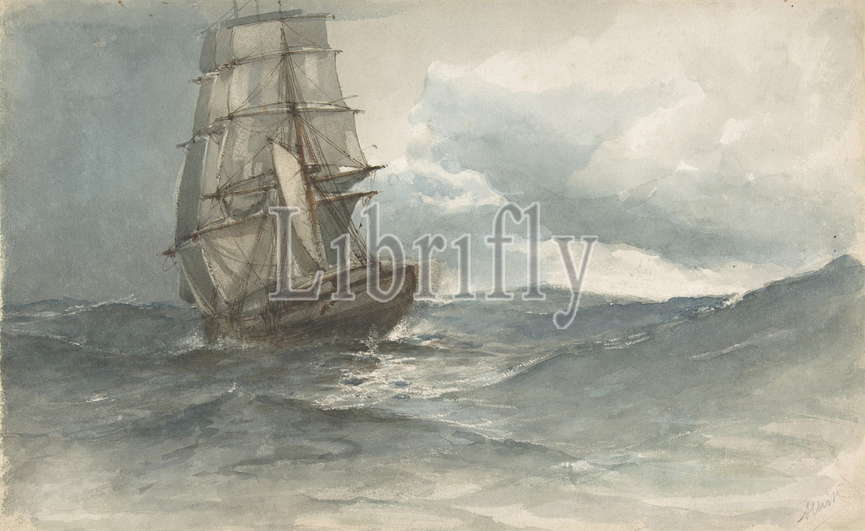 Ship at Sea, late 19th century, Watercolor, sheet: 10 3/8 x 16 5/8 in. (26.4 x 42.3 cm), Drawings, Albert Ernest Markes (British, 1865–1901 Newquay)