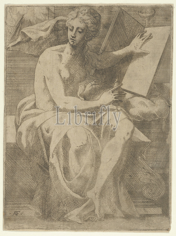 Sibyl, 1540–45, Etching, engraving, Sheet, trimmed, 9 3/8, 6 15/16, 23.8, 17.7 cm, Prints, Antonio Fantuzzi, Italian, active France, 1537–45, After Francesco Primaticcio, Bologna, 1504/5–1570, Paris