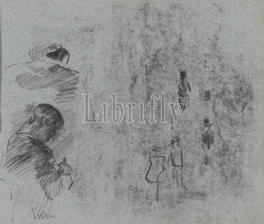 Silhouettes and 2 figures seen from behind, James Ensor, circa 1860-1949, drawing, Belgian Art