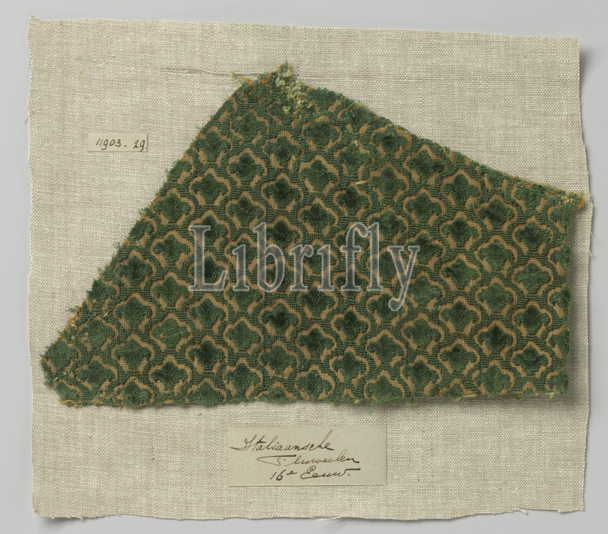 Silk velvet fragment, Velvet fragment, orange-ribbed soil, drawing, scaly-laid fields, three-leaf palmettes, green, Italy, c, 1500, 1600, silk, velvet, fabric weave, ciselé velvet