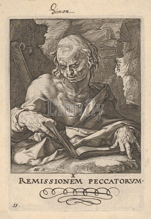 St. Simon, from Christ, the Apostles and St. Paul with the Creed, ca. 1589, Engraving, plate: 5 7/8 x 4 1/8 in. (15 x 10.5 cm), Prints, Hendrick Goltzius (Netherlandish, Mühlbracht 1558–1617 Haarlem)
