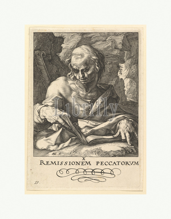 St, Simon, Christ, Apostles, Paul, Creed, ca, 1589, Engraving, sheet, 6 1/8 x 4 5/16, 15.5 11 cm, Prints, Hendrick Goltzius, Netherlandish, Mühlbracht, 1558–1617, Haarlem