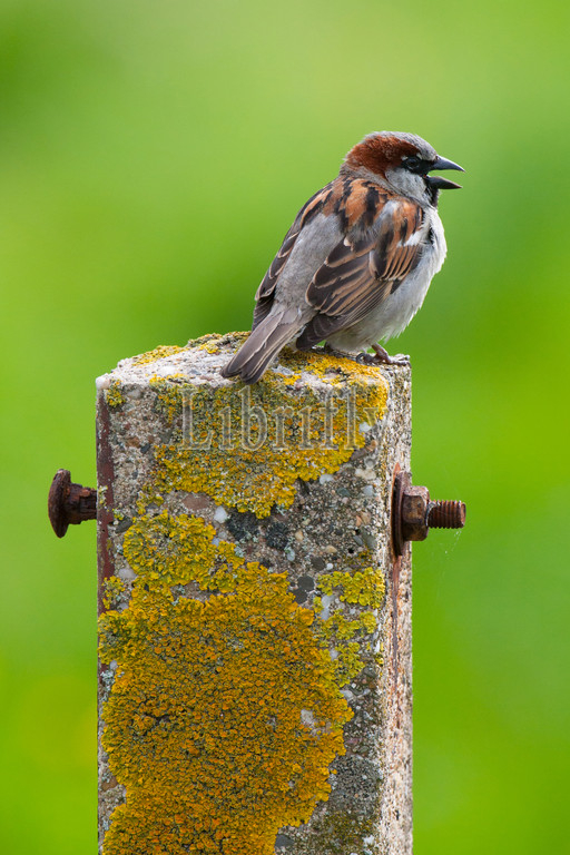 Singing male House Sparrow, Passer domesticus