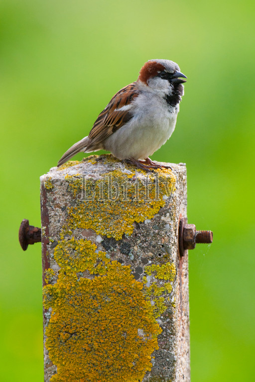 Singing male House Sparrow, Passer domesticus