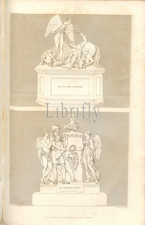 Sir Thomas Picton and Sir William Ponsonby, Monuments to Sir Thomas Picton and Sir William Ponsonby at St. Paul's Cathedral, signed: Drawn by H. Corbould; Engraved by C. Heath; Published by Lackington & Co. and Longman & Co., Pl. LXIII, after p. 472, Corbould, H. (drawing); Heath, C. (engraving); Lackington & Co. (publ.); Longman & Co. (publ.), William Dugdale, Henry Ellis: The history of Saint Paul's Cathedral in London, from its foundation: extracted out of original charters, records, leiger-books, and other manuscripts. London: printed for Lackington, Hughes, Harding, Mavor, and Jones; and Longman, Hurst, Rees, Orme, and Brown, 1818