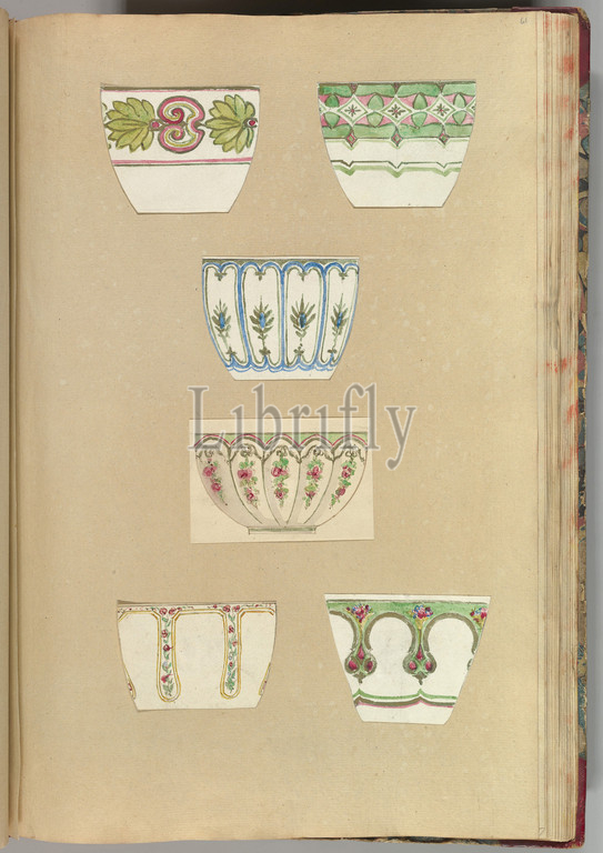 Six Designs for Decorated Cups, 1845–55, Pen and ink, and watercolor, sheet: 16 3/4 x 11 7/16 in. (42.5 x 29 cm), Alfred Henry Forrester [Alfred Crowquill] (British, London 1804–1872 London)