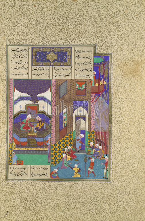 Siyavush, Jarira Wedded, Folio 183v, Shahnama, Book, Kings, Abu'l Qasim Firdausi, commissioned, Shah Tahmasp, ca, 1525–30, Iran, Tabriz, Opaque watercolor, ink, silver, gold, paper, Painting, H, 11 1/8 x W, 8 9/16, 28.3, 21.7 cm, Codices, Painting attributed to `Abd al-Vahhab, Claiming, compatriots, spurned Siyavush, Piran offers, daughter Jarira, marriage, Elegantly clothed, perfumed, presented, young prince, weds, happily