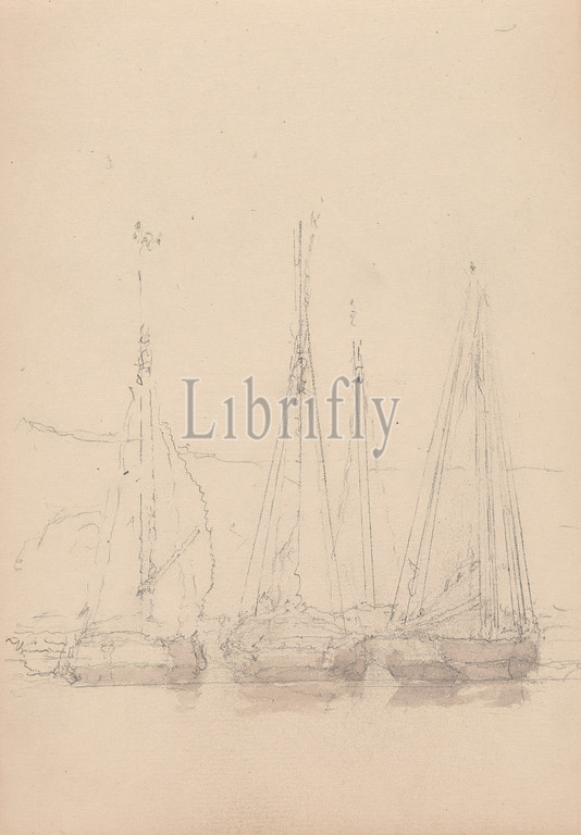 Sketch, Three Boats, Clarkson Stanfield, 1793–1867, British, 1863, Graphite, watercolor, moderately thick, slightly textured, cream wove paper, Sheet, Binding, 5 1, 4 inches, 13.3 cm