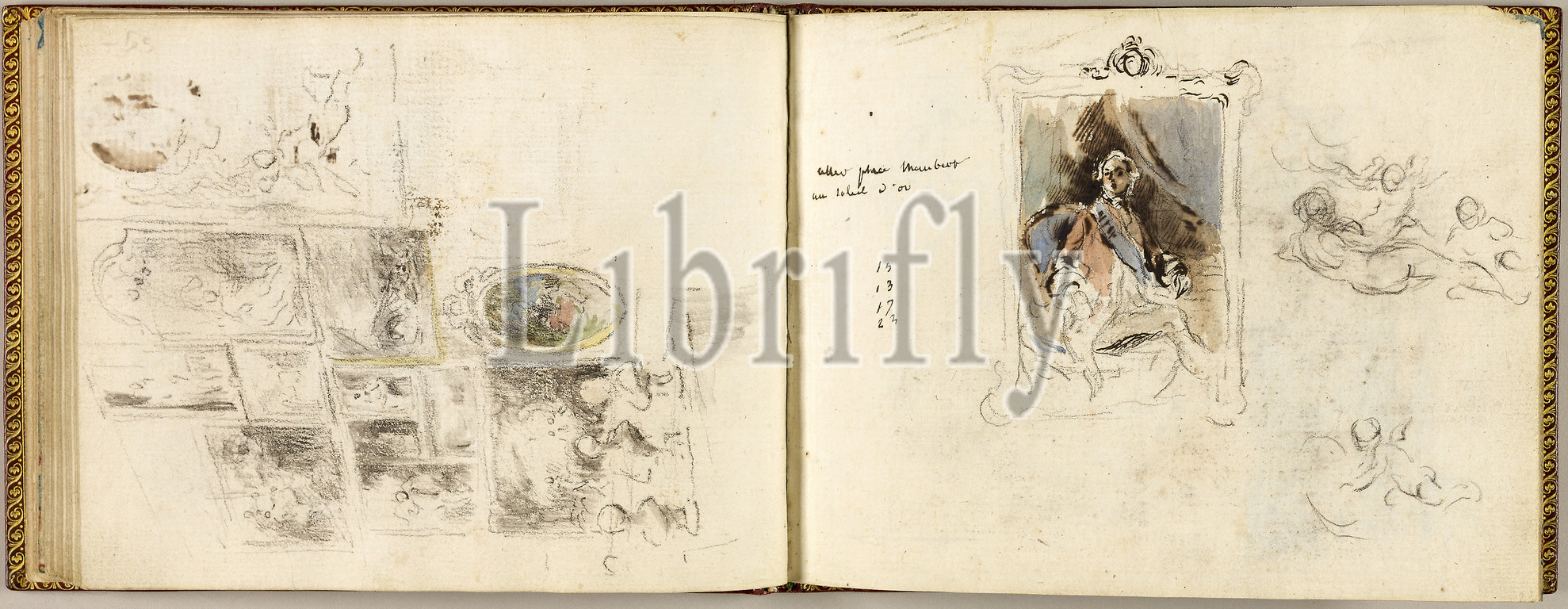 Sketchbook, c. 1760–64, Gabriel Jacques de Saint-Aubin, French, 1724-1780, France, Graphite, pen, wash, watercolor, paper, 130