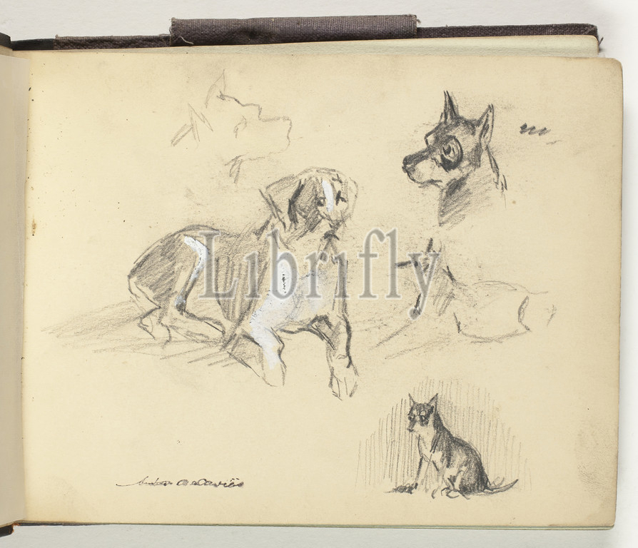 Sketchbook I, 1883, Arthur B. Davies, American, 1862-1928, United States, Maroon buckram cover, tinted paper pages, designs, graphite, watercolor, 120