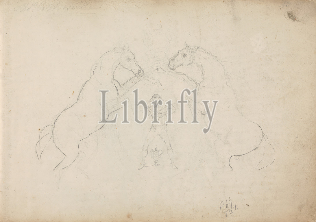 Sketchbook Drawing, Sawrey Gilpin, 1733–1807, British, 1787, Graphite, pen and brown ink, and gray wash on moderately thick, slightly textured, cream laid paper, Sheet: 10 1/4 x 14 3/4in. (26 x 37.5cm), animal art