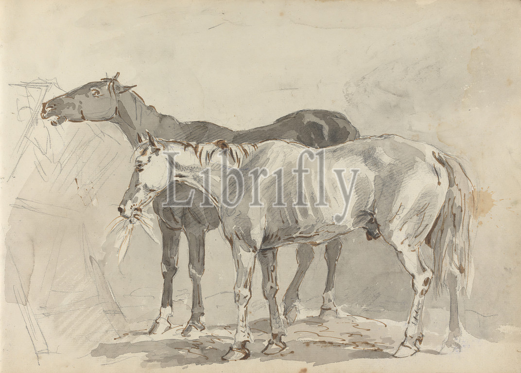 Sketchbook Drawing, Sawrey Gilpin, 1733–1807, British, 1787, Graphite, pen and brown ink, and gray wash on moderately thick, slightly textured, cream laid paper, Sheet: 10 1/4 x 14 3/4in. (26 x 37.5cm), animal art