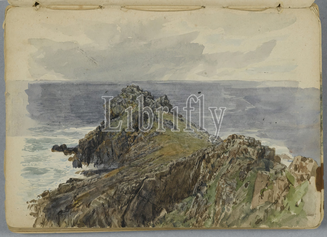 Sketchbook, English Coastal Scenery, William Trost Richards, American, 1833-1905, Graphite, watercolor, beige, medium thick, smooth wove paper, 1878, Closed, 5 1/4 x 7 3/8, 13.3 x 18.7 cm, 1878, brush strokes, drawing, foam, graphite, land tongue, promontory, rock, Rocks, rocky coast, sea, Seascape, Sketchbook, Water, watercolor