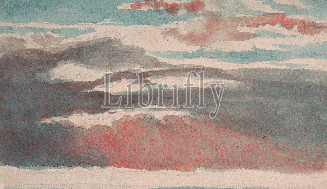 Sky Study, No, 2, Attributed, Thomas Lindsay, 1793–1861, British, Watercolor, graphite, medium, slightly textured, cream wove paper, Sheet, blue, clouds, panorama, red, sky